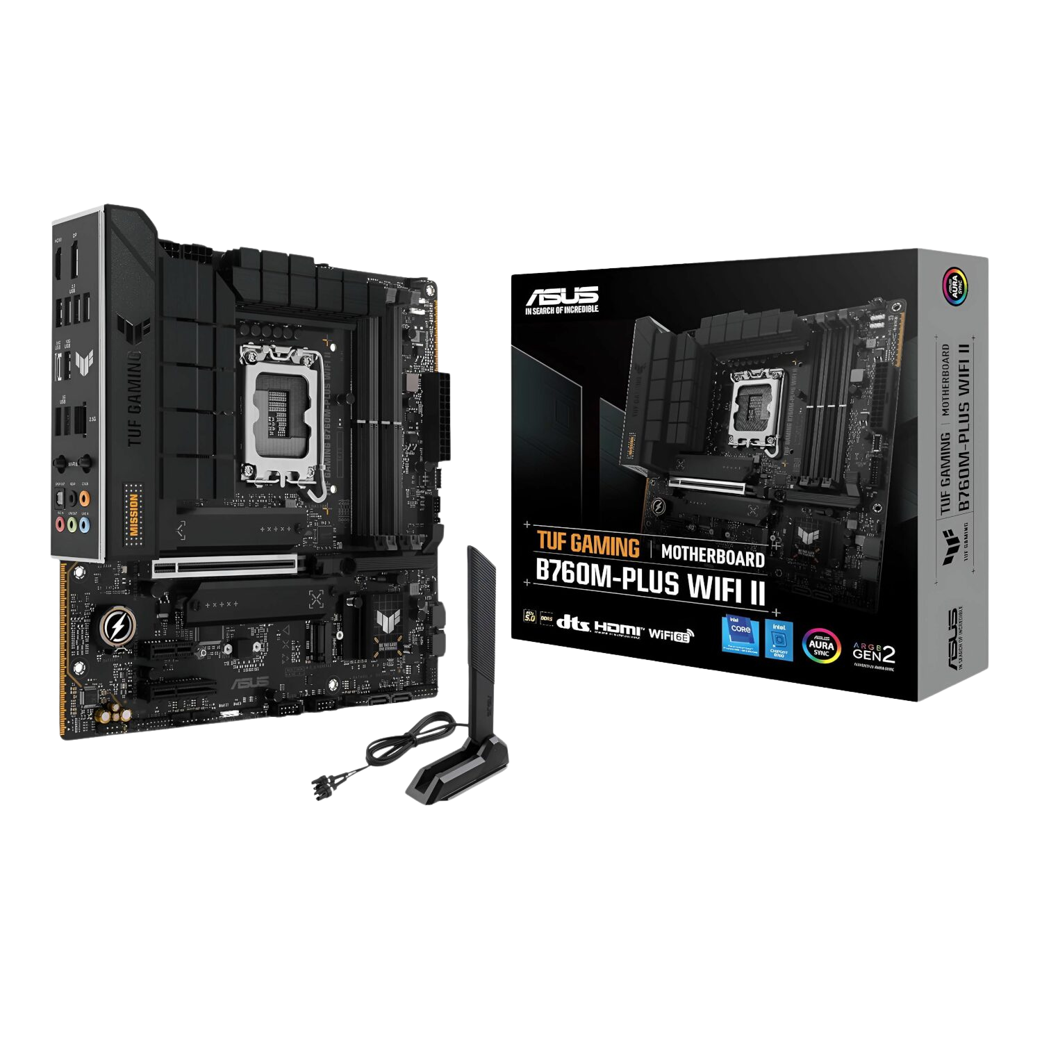 The Asus TUF Gaming B760M-PLUS WIFI II is a robust micro-ATX Motherboard that delivers exceptional durability, advanced performance, and rock-solid stability for 14th,13th and 12th Gen Intel® Core™ processors. Engineered with military-grade components and TUF-tested reliability, it caters to competitive gamers, PC builders, and performance-driven users seeking a balance between next-gen features and dependable construction.