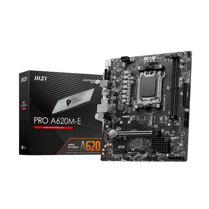 • MSI PRO A620M-E AMD AM5 mATX Gaming Motherboard – Black x1